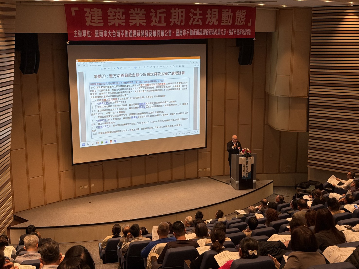 本次演講邀請到中華民國不動產建築開發商業同業公會全國聯合會 于俊民 秘書長為會員們解析最新的建築業法規